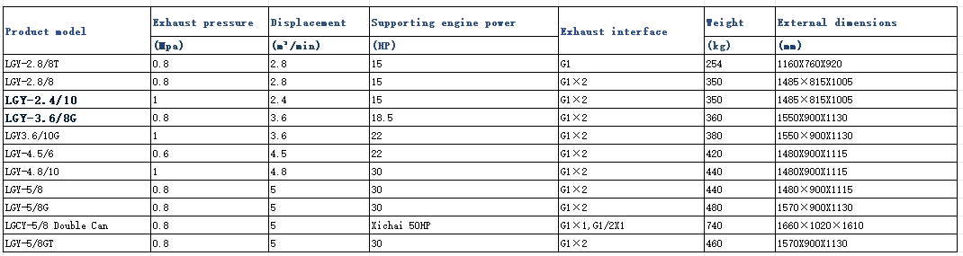 Exhaust pressure : 0.5-2.5Mpa